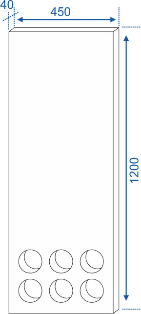 Dimensions: 450mm width x 1200 mm height x 40 mm thickness